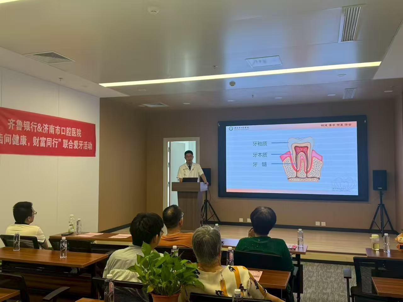 爱牙日前夕,历下院区的口腔健康推广行动早已悄然启动。院区组织专业医疗团队走进奥龙小学,为1470名一年级新生带来了“开学第一课”——一场生动有趣的口腔健康科普讲座。主治医师刘慧超通过动画演示、互动提问等方式,向孩子们普及牙齿结构、正确刷牙方法等知识,在孩子们心中播下了爱牙护牙的种子。全场小朋友聚精会神、踊跃举手参与,在轻松愉快的氛围中掌握了基础的口腔保健知识,同时也深刻认识到保护牙齿的重要性。院区还与齐鲁银行联合举办了“齿间健康,财富同行”爱牙日活动,通过健康讲座、免费口腔检查及洁牙体验等环节,让银行职工与客户更加深入地了解口腔健康的重要性。在院区安排下,来宾们依次参观了消毒供应室、先进设备区和临床诊室。医院工作人员详细介绍了器械消毒流程、先进牙科设备的功能以及特色诊疗项目,使参观者直观感受到专业口腔医疗机构的标准操作流程与服务质量控制体系。不少参观者表示,这是他们第一次如此近距离接触口腔诊疗的后台区域,对口腔诊疗的安全性有了更深入的认识和更强的信心。此次活动为搭建医患沟通新桥梁发挥了积极作用。