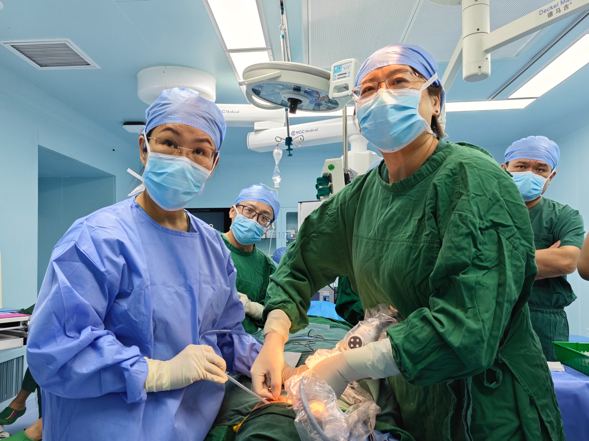 面对朱女士的病情,崔婧主任医师及尹小朋副主任医师组织团队进行了专题讨论,鉴于右侧关节的严重情况,计划为患者实施右侧关节手术治疗。但是朱女士很爱美,她希望手术的瘢痕能尽量小,手术创伤也尽量小。为满足朱女士的诉求,崔婧主任邀请邀请上海交通大学附属第九人民医院陈敏洁教授进行了联合会诊,在充分沟通并取得患者同意后,于7月在关节镜下为朱女士施行了右侧关节手术治疗,开创了山东省首例关节镜下颞下颌关节手术。