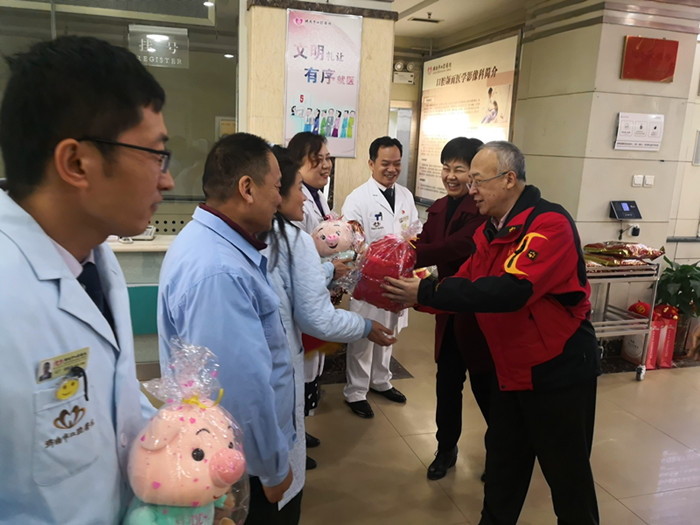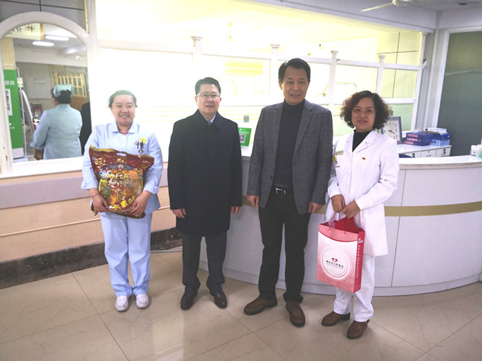 2月5日,农历己亥猪年春节大年初一。一大早,市卫计委党委委员、副主任张振民、市卫计委巡视员姜勇、妇幼处处长崔蕾、监督食安处调研员甄广新,一行来到市口腔医院,慰问坚守工作岗位的工作人员,市口腔医院领导班子及相关职能科室主任陪同慰问。
