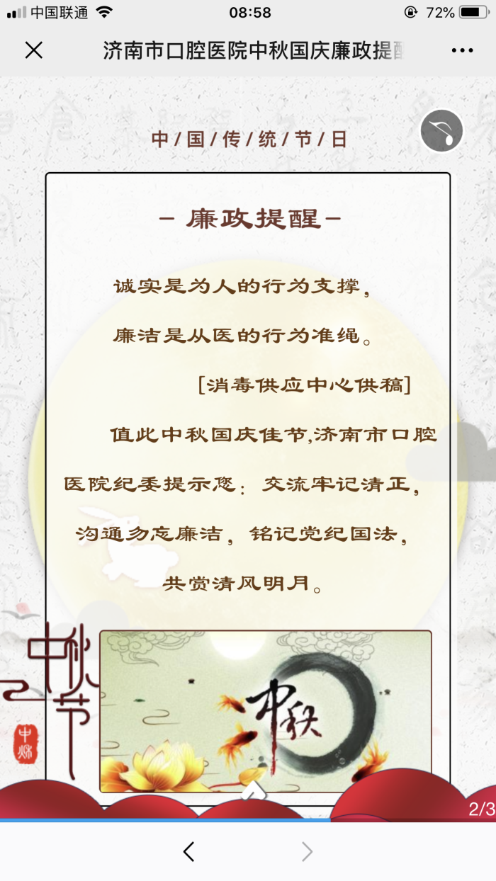 济南市口腔医院向全院职工发送过节廉政信息确保廉洁过节