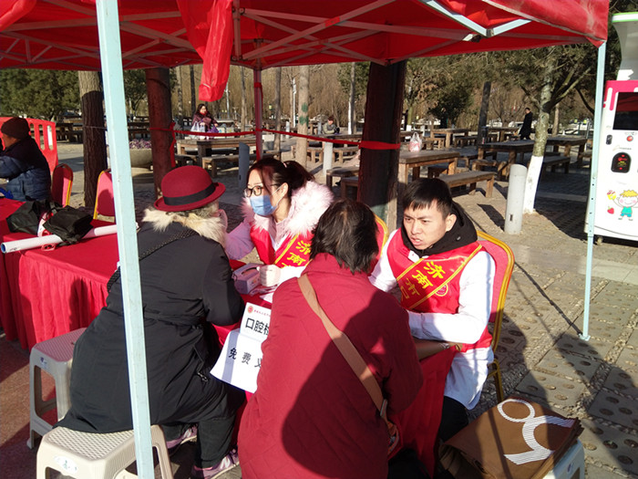 市口腔医院义诊活动走进泉城广场 2019-01-21 00:00本站原创 1月20日上午,市口腔医院牙体牙髓病科医生来到位于泉城广场泉标北侧的“泉城义工”志愿服务岗,进行义诊活动,为广大泉城百姓进行口腔健康检查和咨询。 义诊中,市口腔医院牙体牙髓病科医生耐心地向居民们讲解如何正确刷牙,老年人如何保护牙齿和口腔健康,为到现场的市民群众认真地进行了口腔健康检查,并针对检查的情况向到场市民一一介绍。医生们热情的服务态度和奉献精神获得了过往市民的一致认可。 现场照片 现场照片
