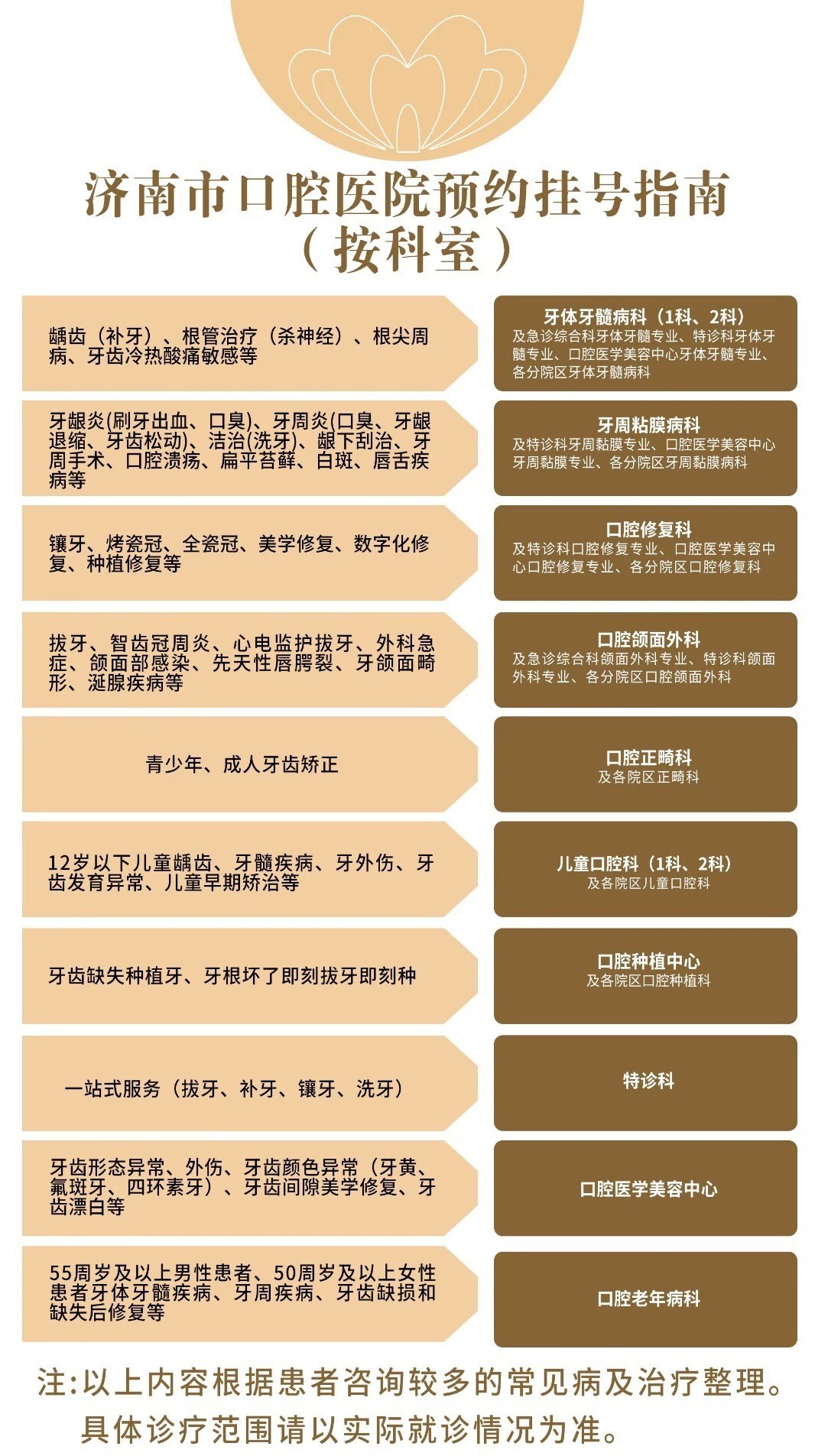 为方便中老年患者就诊,济南市口腔医院于2024年9月成立口腔老年病科,是集牙体牙髓疾病、牙周疾病、牙齿缺损和缺失后修复等一系列牙病诊治的综合性科室,为55周岁及以上男性患者、50周岁及以上女性患者提供方便快捷的口腔诊疗服务。科室位置:总院区A座一楼南首东西诊室。